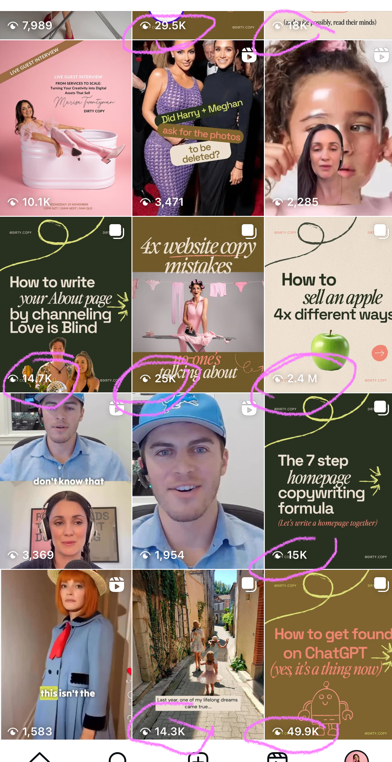 Over the past three years I've been refining my carousel strategy, to the point where basically every carousel gets high engagement (that's a screenshot of my feed right nowwith the carousel numbers circled) 👉👉👉